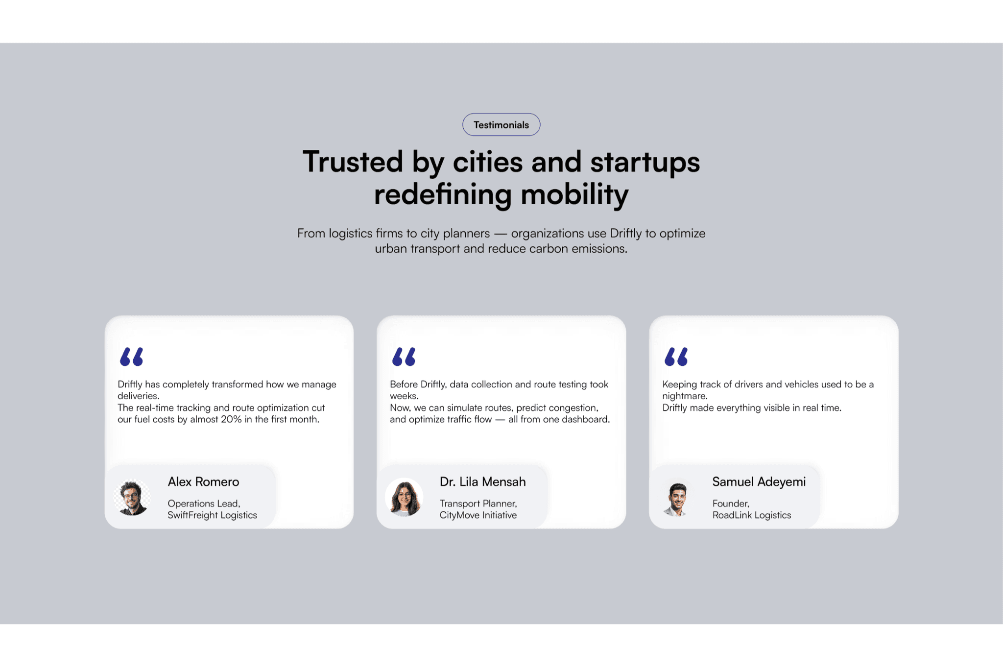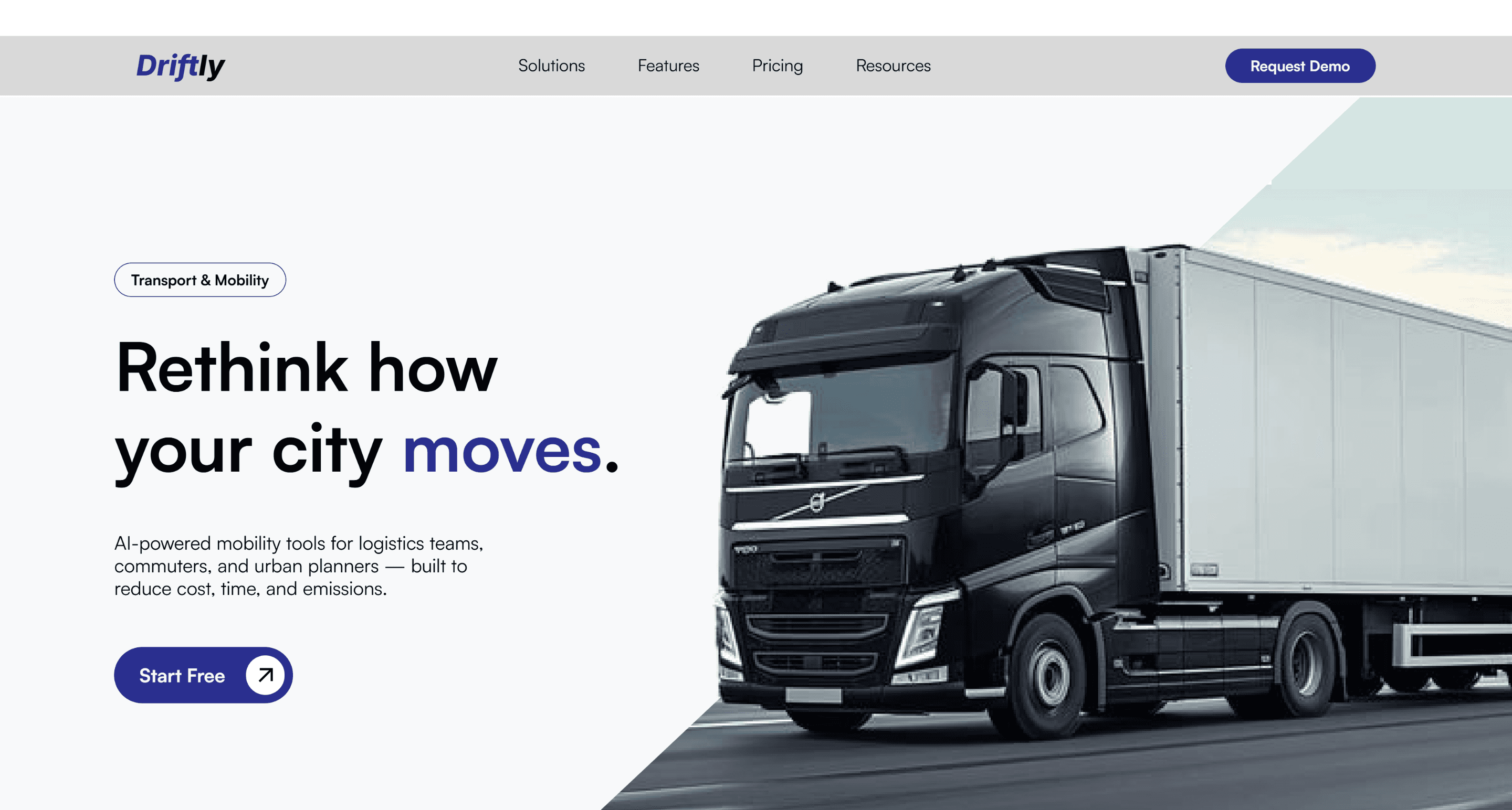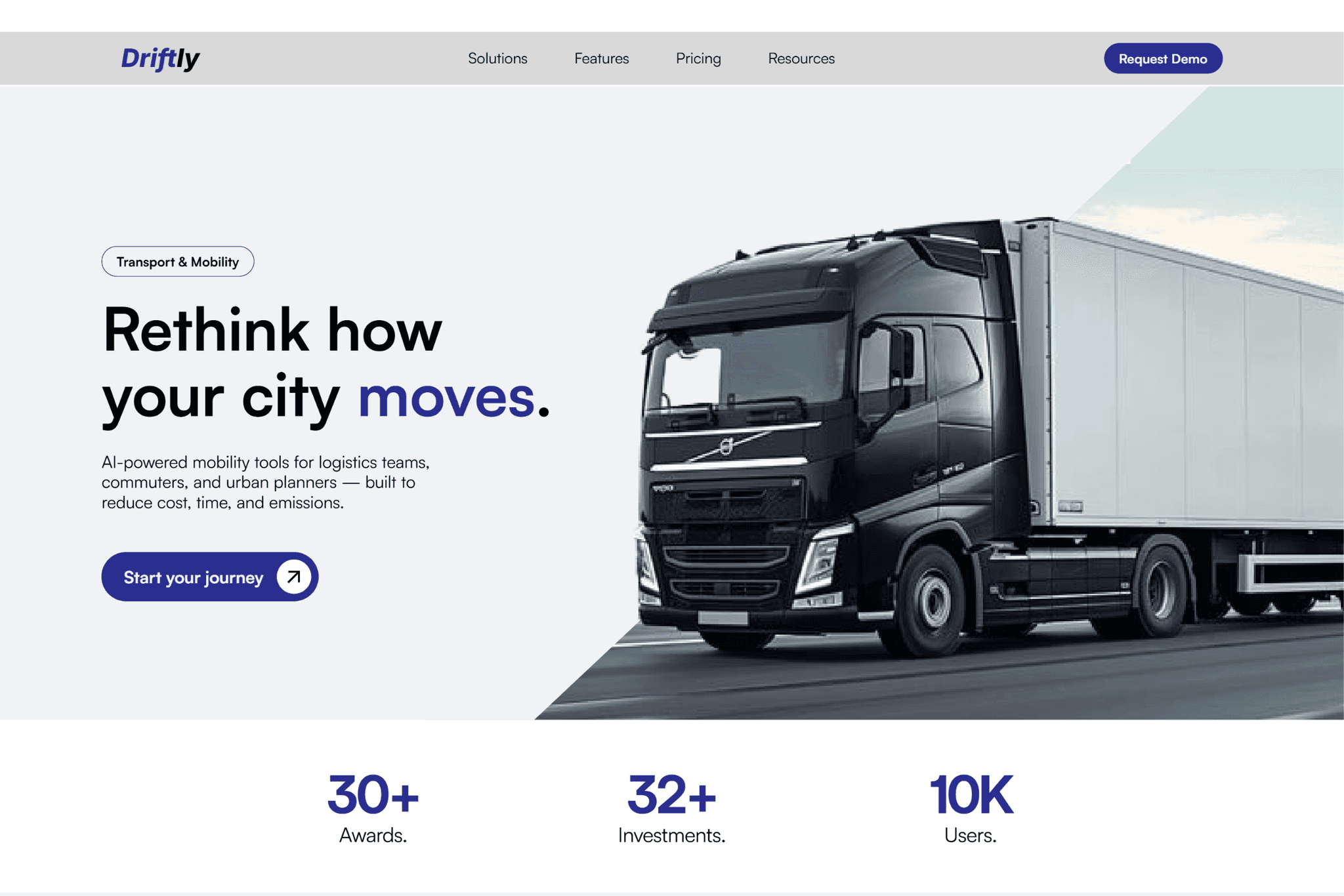 Designed a logistics platform landing page that transforms complex urban mobility challenges into a clear value proposition.